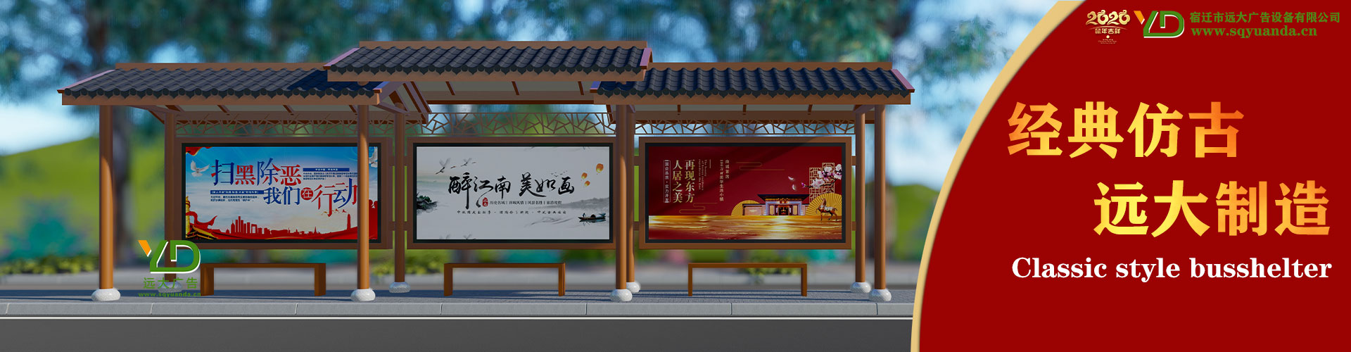 宿遷市遠大廣告設備有限公司是一家專業生產公交候車亭,公交站臺,閱報欄,指路牌,廣告垃圾箱,滾動換